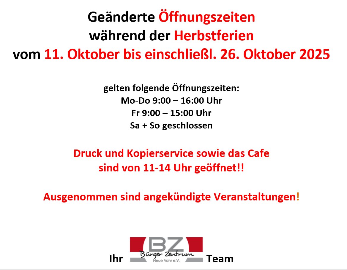 Ferienöffnungszeiten