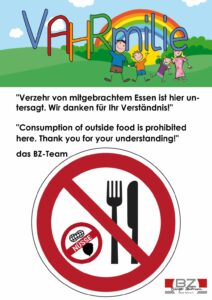 Wir freuen uns riesig, dass unser ‚VAHRmilie‘-Angebot so gut ankommt und wir mittlerweile an den Wochenenden bis zu 300 Gäste begrüßen dürfen. Da wir aber gemerkt haben, dass unsere Räumlichkeiten dadurch an ihre Grenzen kommen, bitten wir euch um Verständnis, dass wir das Mitbringen und Verzehren von Speisen während der Veranstaltung nicht mehr erlauben. Wir glauben, dass es für zwei Stunden gut machbar ist, einfach mal auf Essen zu verzichten. Vielen Dank euch allen!