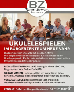 Das Bürgerzentrum Neue Vahr lädt musikbegeisterte Ukuelespieler*innen zur Teilnahme an seiner Ukuelengruppe ein.